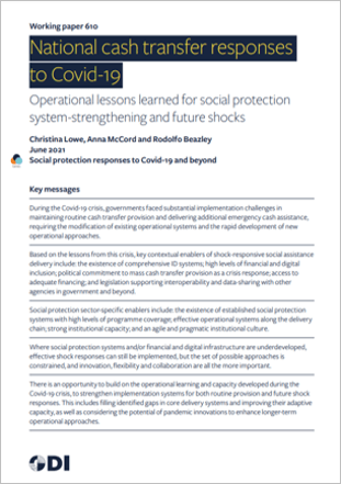 During lockdown in 2020 I worked with ODI and also the CIDT and SPACE on trying to identify what we could learn in real time from current social protection responses to Covid-19 in terms of both programme design and financing.