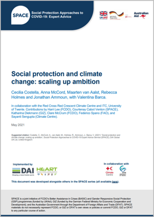 CCASP has also prepared a report: Climate Change and Social Protection Stakeholder Mapping for the Social Protection Technical Assistance, Advice, and Resources Facility (STAAR).