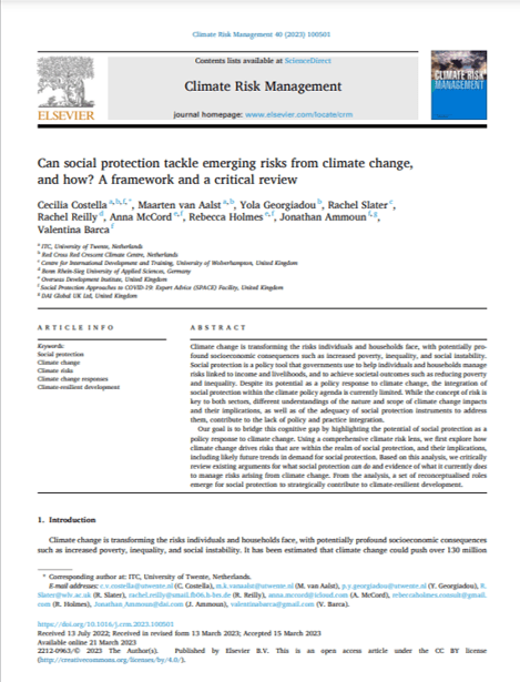 In the report by the Australian Department of Foreign Affairs and Trade, Cecilia Costella and I argue that, while social protection has the potential to play an important role in helping to manage climate challenges and enable the structural changes required to achieve a green transition, existing social protection systems will need significant transformation in terms of scale and design.